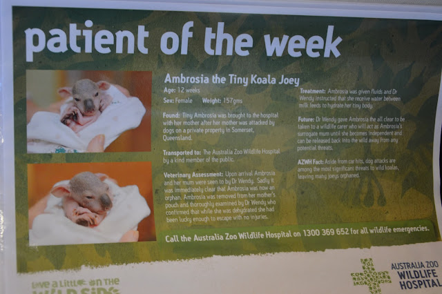 Australia Zoo on Steve Irwinin ja hänen perheensä perustama eläinpuisto Sunshine Coastilla, joka on Brisbanesta pohjoiseen päin. Steve Irwin tunnetaan ehkä paremmin krokotiilimiehenä "Crocodile Hunter" ja ohjelmista, joita Suomessakin on näytetty. Eläinpuistossa on paljon pelastettuja eläimiä ja sen yhteydessä toimii myös villieläinsairaala, Sunnuntaina suuntasimme nelistään; Aino, Arto, Jonna ja Henna autolla kohti Australia Zoota sekä eläinsairaalaa.