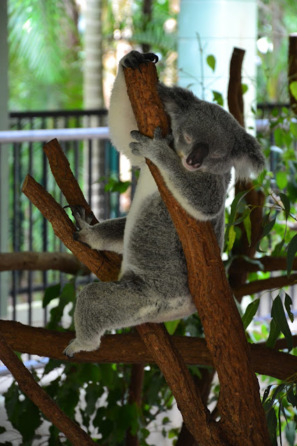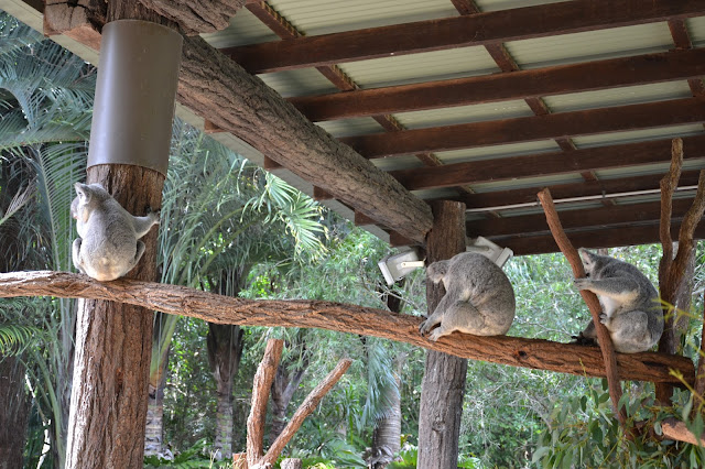 Nähtiin jälleen ihania koalia! Aamupäivästä ne köllivät onnellisina puun oksilla ja mussuttivat lehtiä. Kun myöhemmin tulimme taas katsomaan koalia, oli näky ihan erilainen. Eläinhoitajat koittivat saada koalia pois puusta ja ne kiipesivät korkeimmille oksille karkuun. Yksi koala piti kovaa mörinää ja mietimme että mitä ihmettä täällä tapahtuu. Sitten selvisi, että eläinhoitajat yrittivät saada tiettyä naarasta pois puusta, jotta se saataisiin astutuettua. Koalien ääntely oli jotain aivan uskomatonta. Onneksi saatiin siitä videota!