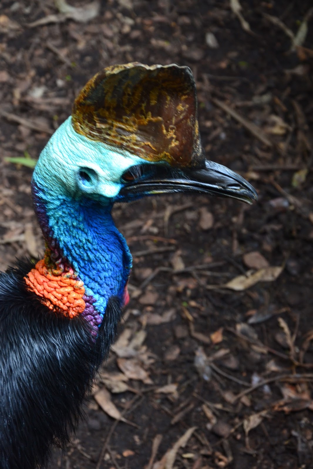 Tämä on cassowary. Näyttää ihan dinosaurukselta, eikö? Se muistuttaa vartaloltaan emua.